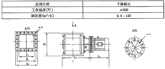 該閥又名葉輪給料機(jī)、回轉(zhuǎn)下料器等,普遍適用于建材、冶金、化工、電力等部門作為各類除塵設(shè)備的卸料裝置及各種磨機(jī)、烘干機(jī)、料倉(cāng)等設(shè)備的給卸料裝置。